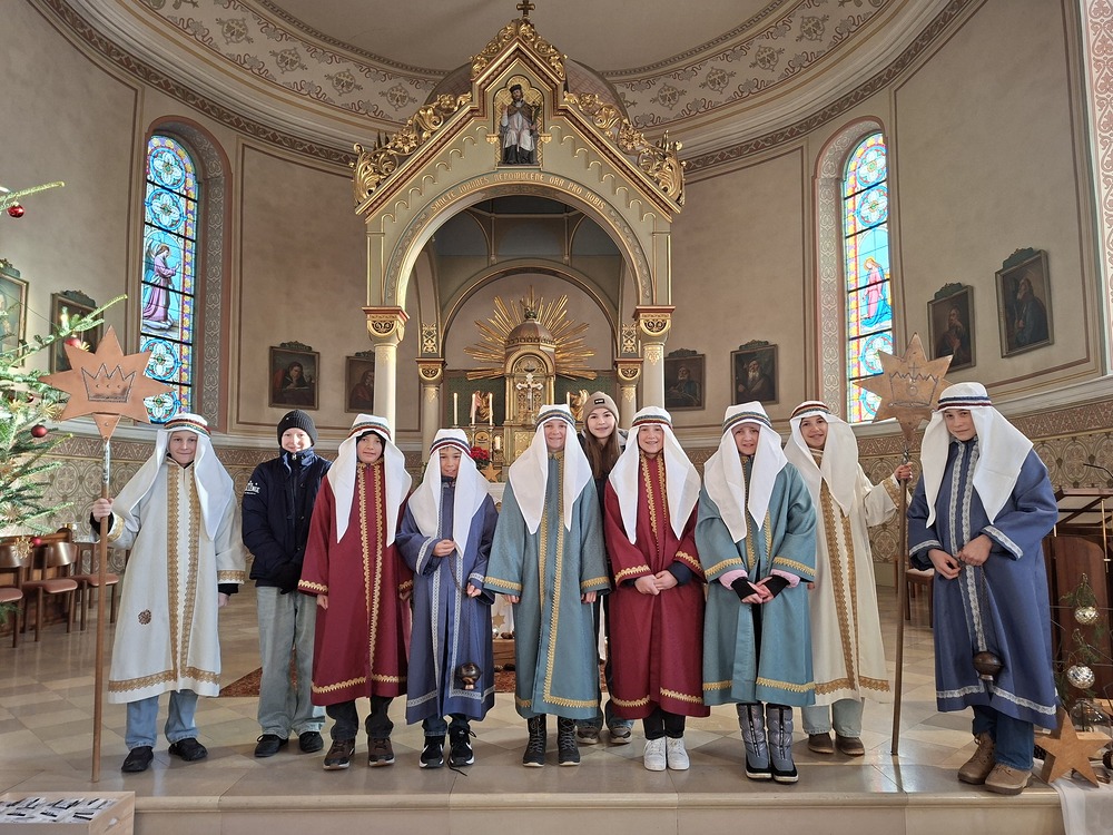Am Fest der Heiligen Drei Könige zogen die Sternsinger gemeinsam mit Pater Abidon mit dem Lied „Stern über Bethlehem“ feierlich in die Kirche ein.