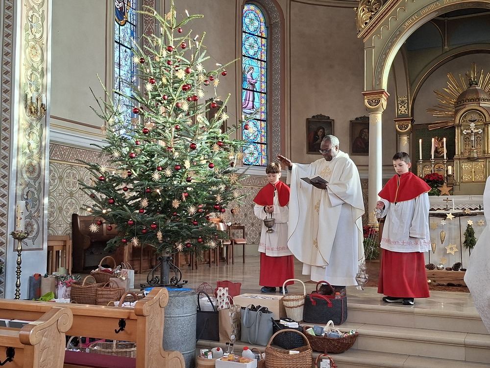 Zum Abschluss des Gottesdienstes weihte Pater Abidon Salz und Wasser und spendete den Gläubigen den Segen.