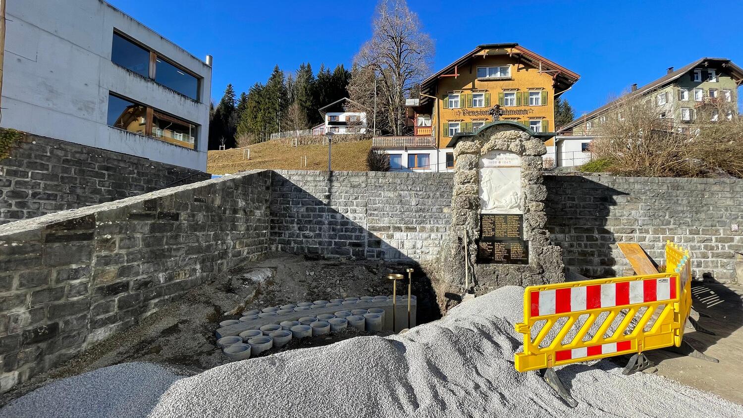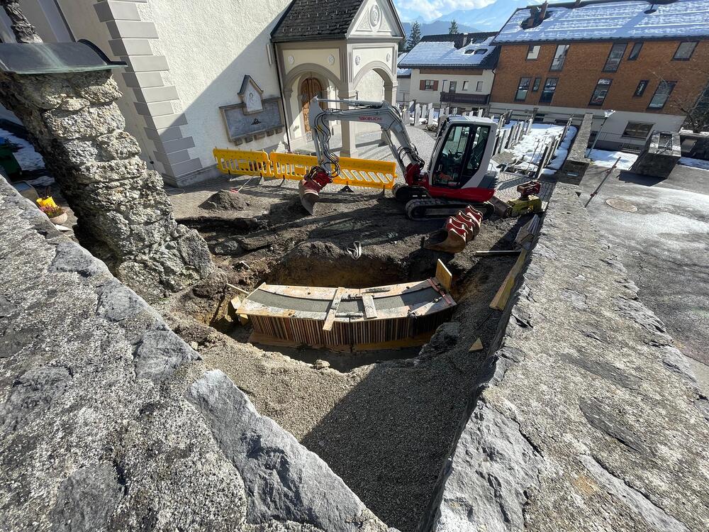 Mit der Durchführung der Arbeiten wurde die Baufirma Dietrich Schneider aus Wolfurt beauftragt. Die Ausgrabungsarbeiten sind bereits abgeschlossen, ebenso wurde das Fundament für die Gedenktafel angelegt.