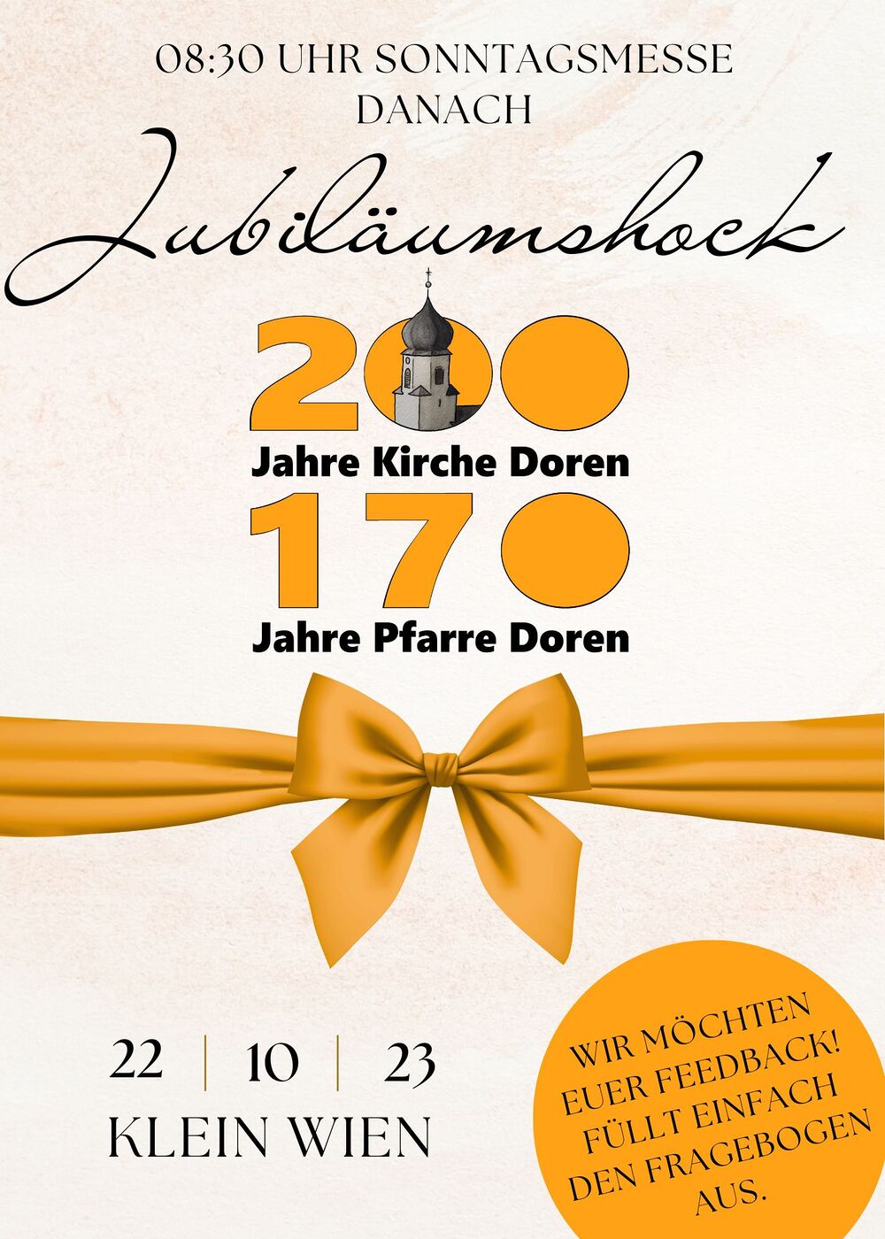 Dabei wurden nicht nur die diesjährigen Jubiläen von 200 Jahren Kirche und 170 Jahren Pfarre Doren gefeiert, sondern auch in die Zukunft geblickt. Mit einem Fragebogen wurde die ganze Bevölkerung von Doren befragt, was sie sich von der Pfarre wünscht, was gut läuft und was nicht. Bei selbstgemachten Brotaufstrichen und Kuchen wurde auf ein abwechslungsreiches Jahr im neuen Pfarrverband zurückgeschaut. Passend zum Weltmissionssonntag verkauften Ministranten Missio-Schokolade für den guten Zweck.