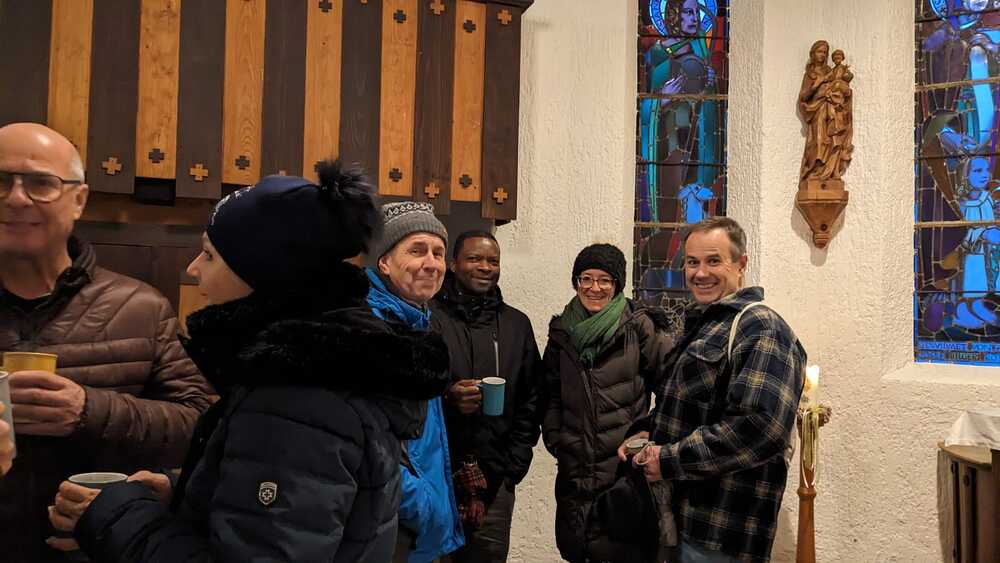 Trotz der nassen Witterung ließen es sich viele Dorener:innen nicht nehmen, zur Kapelle zu kommen. Ein Bläser-Ensemble des MV Doren stimmte auf die besinnliche Andacht in der Kapelle ein, Kinder aus der Nachbarschaft trugen Gedanken zum Licht-sein für Mitmenschen vor. Feine Mundharmonika-Klänge von Johann Giselbrecht umrahmten die STERN.stunden in der Kapelle, der auch Pater Regis beiwohnte.