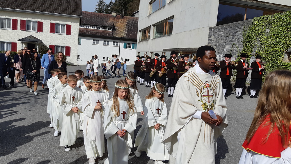 Seit der Taufe sind wir mit Jesus auf dem Weg, er begleitet uns, auch wenn wir ihn nicht sehen können. Bei der Eucharistiefeier ist er mitten unter uns und so durften folgende Kinder mit Pater Regis heute den Spuren Jesus folgen: