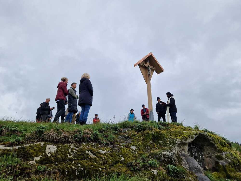 Pater Regis weihte das neue Wegkreuz ein, das in der Parzelle Nellenburg auf einer Anhöhe oberhalb der Grotte aufgestellt wurde.