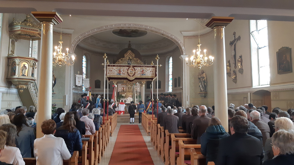 Umso erfreulicher war es, dass nach dem Festgottesdienst, welcher von Pfarrer Albert Egender zelebriert wurde, die Sonne es mit uns gut meinte und so die Ehrensalven der Bürgerschützen abgefeuert werden konnten.
