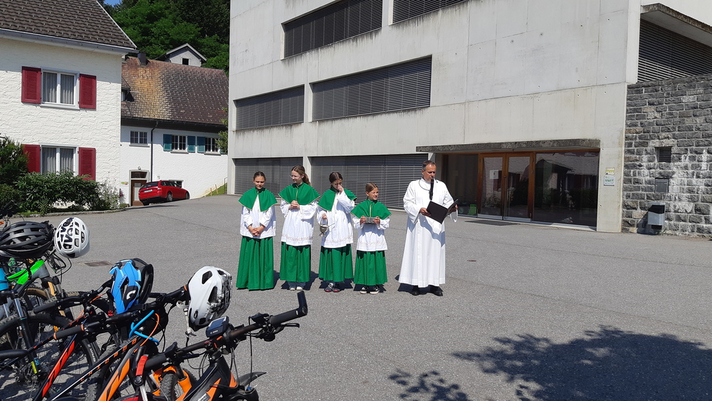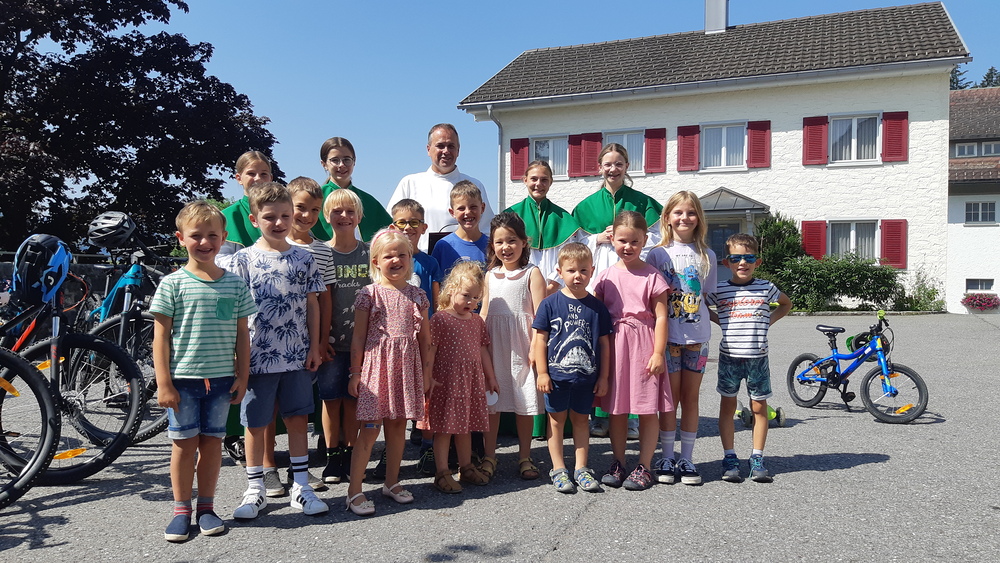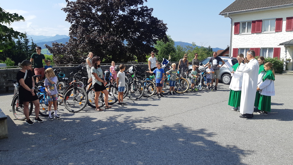 Der Höhepunkt aber war - anschließend an die Wort-Gottes-Feier - die Segnung der Fahrräder der kleinen und großen Verkehrsteilnehmer sowie die Segnung der Kinder.