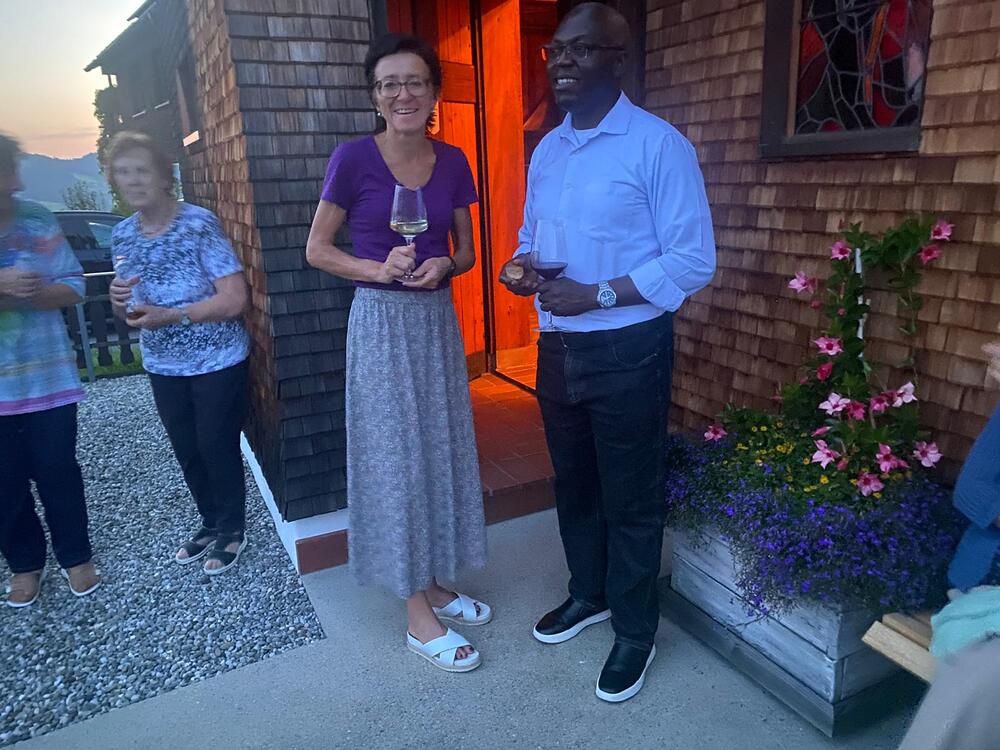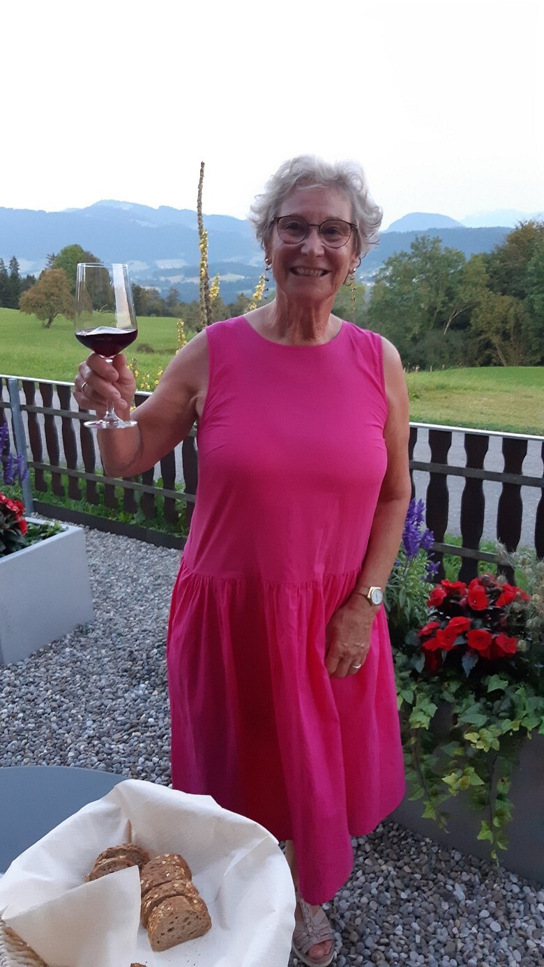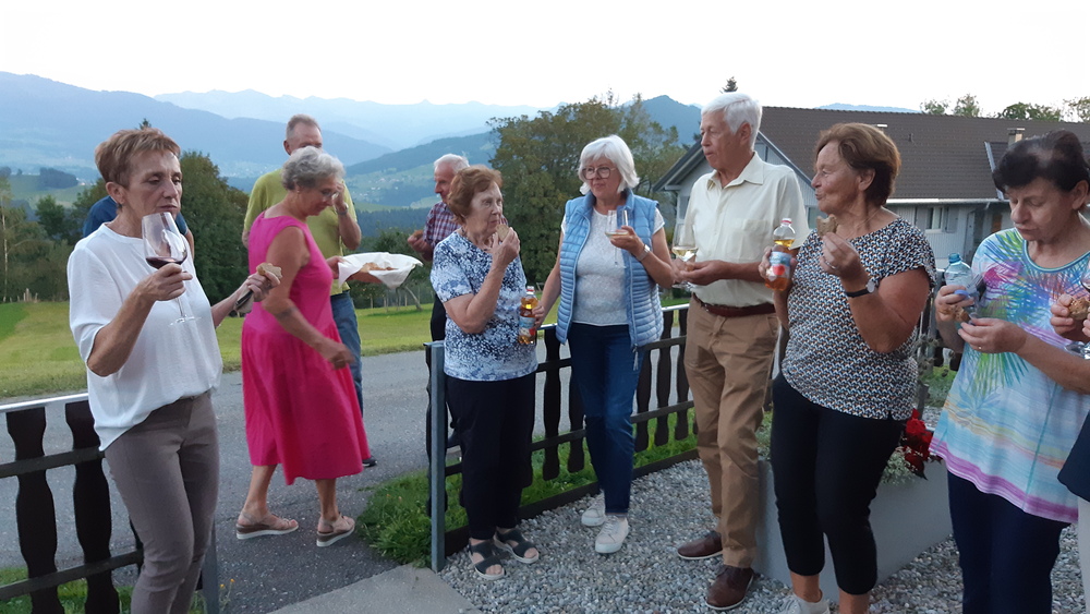 Anschließend wurde in gemütlicher und lustiger Runde bei sommerlichen Temperaturen die wunderbare Aussicht mit einem Gläschen Wein bewundert und auch das Gespräch untereinander kam nicht zu kurz.