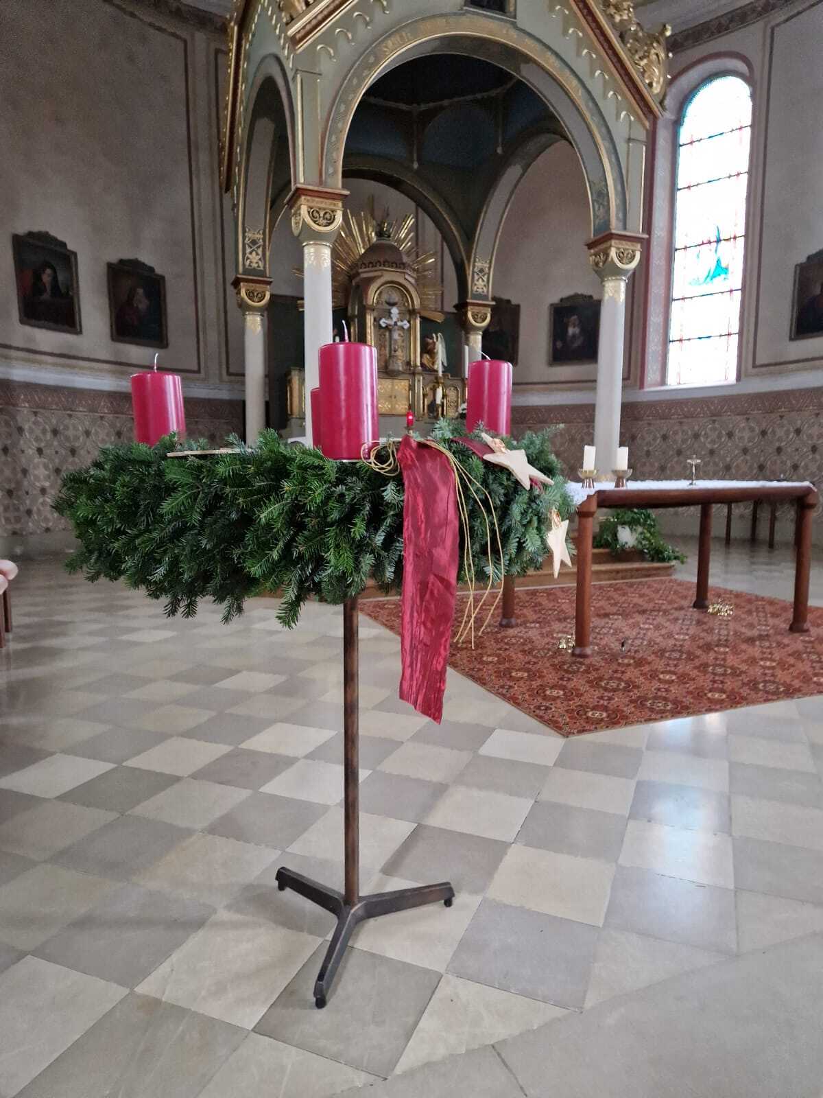 Die Adventkranzweihe findet bei der Vorabendmesse am Samstag, 30.11.2024 um 19.30 Uhr in der Pfarrkirche statt.
