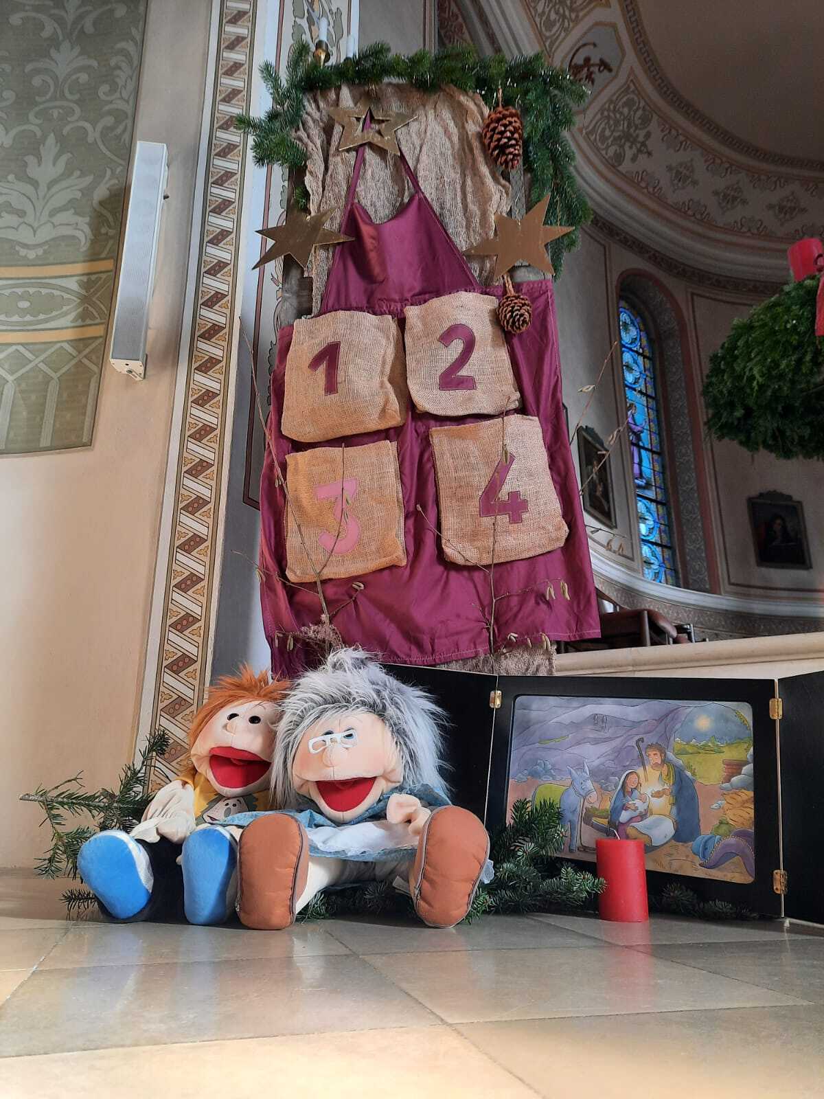Am ersten Adventsonntag fand wieder eine Kinderkirche zum Thema Weihnachten statt. Dabei besuchten uns die Handpuppen Fritz und seine Oma, denen mit Hilfe der Kinder die Weihnachtsgeschichte nähergebracht wurde.