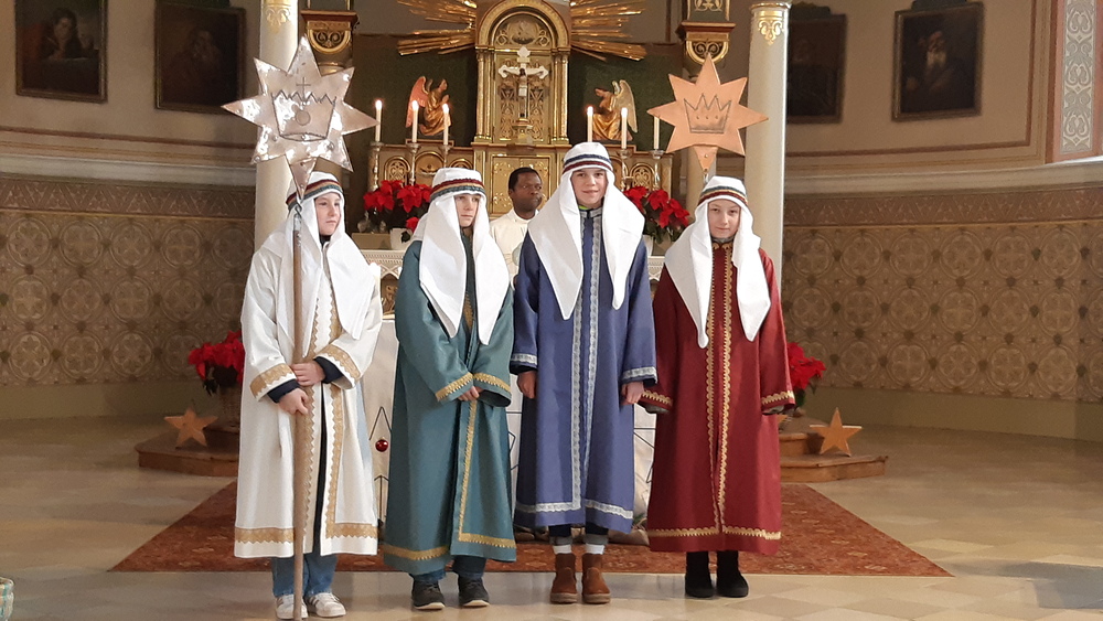 Am Hochfest der Erscheinung des Herrn zogen die Sternsinger feierlich mit Pater Regis in die Pfarrkirche ein. Mit ihrem Lied „Stern über Betlehem“ erinnerten sie an die frohe Botschaft der Geburt Christi und an die Ankunft der Weisen aus dem Morgenland, die das göttliche Kind anbeteten.