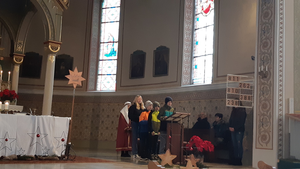 Beim Gottesdienst verkündeten die Sternsinger den Segen „Christus mansionem benedicat“ (Christus segne dieses Haus) und überbrachten der Pfarrgemeinde den Friedensgruß.