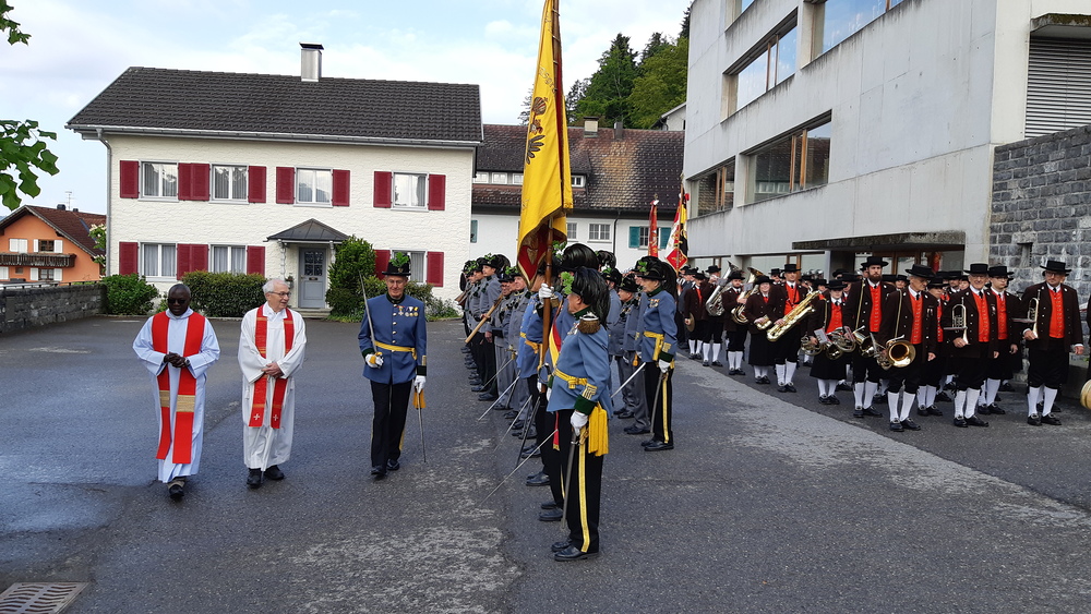 Die Festtagsmesse wurde gemeinsam von Pfarrer Albert und Pater Abidon zelebriert und traditionellerweise rückten der Musikverein, die Bürgerschützen, der Kameradschaftsbund und die Feuerwehr aus.