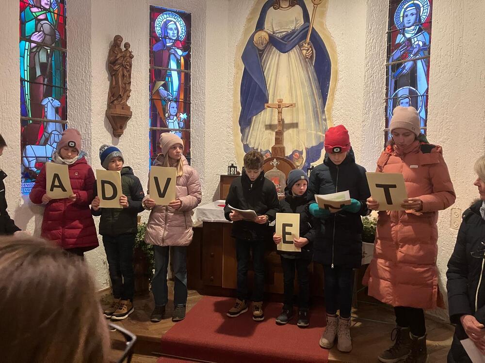 Die besinnlichen Texte, vorgetragen von den sieben Ministrant:innen Florina, Klara, Carolin, Sophia, Jonas, Elias und Paul und den Ministrantenbetreuern Renate und Jonas regten zum Nachdenken an und erinnerten an die wahre Bedeutung der Adventszeit – ein Innehalten und eine Vorbereitung auf Weihnachten in der oft hektischen Vorweihnachtszeit. Die Kinder und Jugendlichen trugen zu jedem Buchstaben des Wortes Advent Gedanken vor, die von Vorfreude auf die kommende Weihnachtszeit geprägt waren.