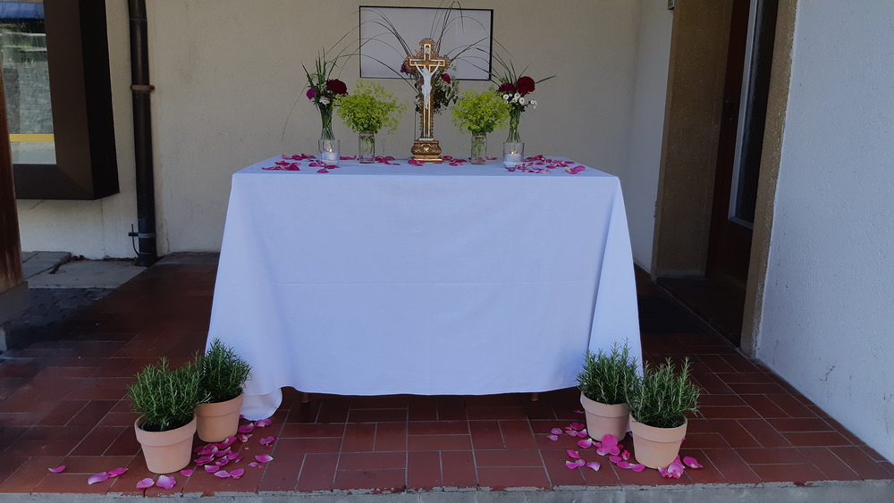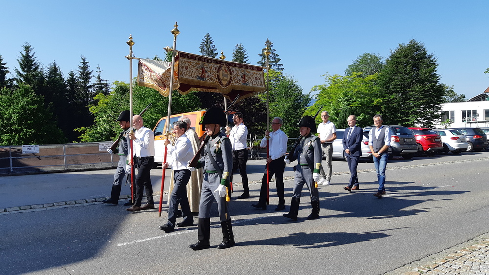 An Fronleichnam gedenken wir der Einsetzung des Sakraments der Eucharistie durch Jesus Christus selbst. Somit lässt sich Fronleichnam sozusagen als zweiter Gründonnerstag unter anderen, fröhlicheren Vorzeichen verstehen. Diese Feier wurde in Doren mit einer Prozession im Dorfzentrum begangen, an der die Bürgerschützen, der Kameradschaftsbund, der Musikverein und die Feuerwehr teilnahmen.