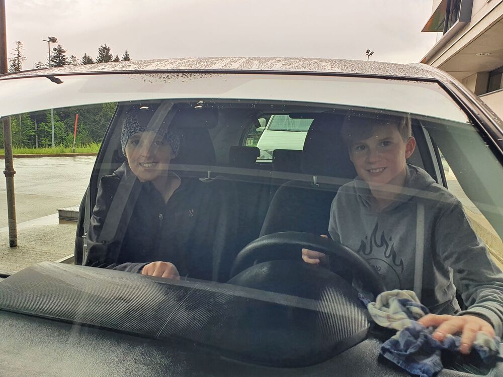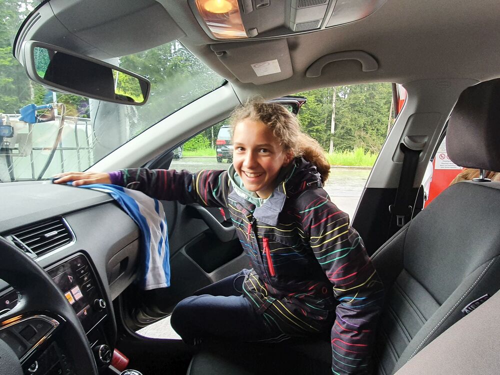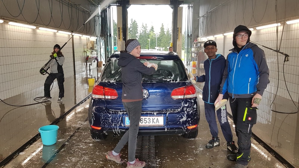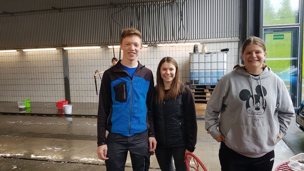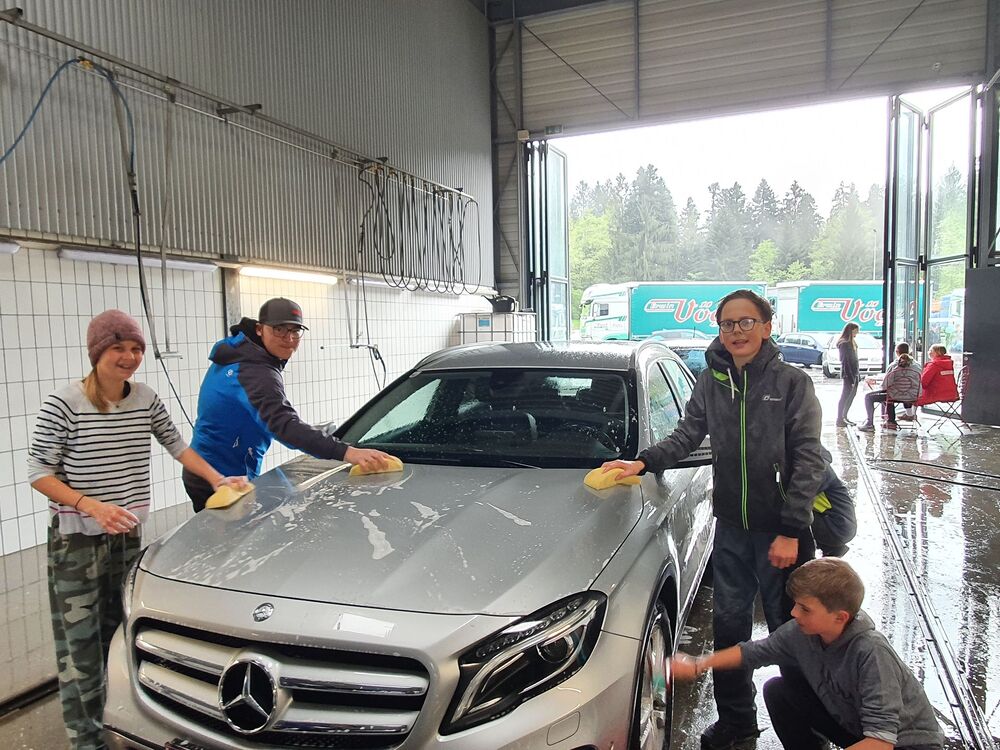Während die Autolenker Kaffee und selbstgemachten Kuchen genossen, reinigten die fleißigen Firmlinge 50 Autos innen und außen.