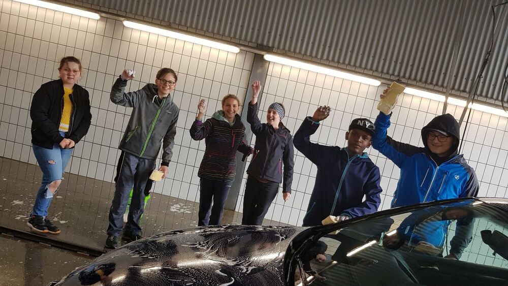Die heurigen Firmlinge wuschen am 13.05.2023 Autos in der Waschhalle von Vögel Transporte und sammelten Spenden für die Lebenshilfe.