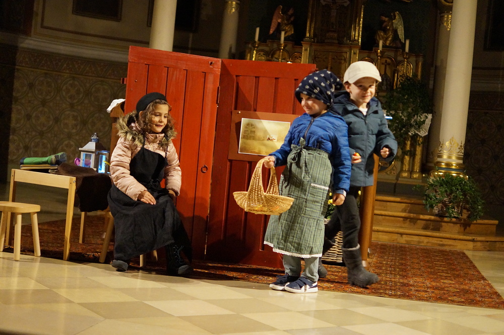 Die Geschichte von Martin, dem Schuster, durften die Kinder liebevoll darstellen und singen. Zu Beginn begrüßte uns Pater Regis herzlich und spendete uns am Ende der Feier den Segen.