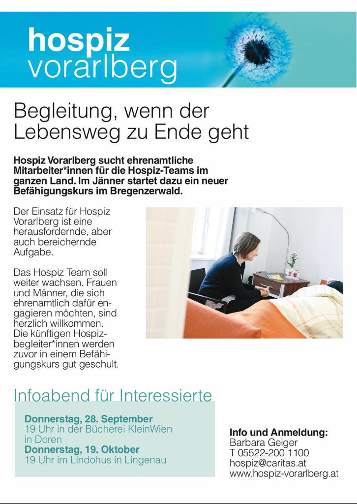 Hospiz Vorarlberg sucht ehrenamtliche Mitarbeiter*innen für die Hospiz-Teams im ganzen Land.