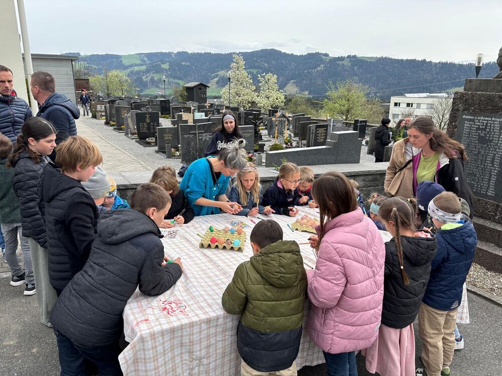 Die Kinder waren nach dem Gottesdienst eingeladen gekochte Eier zu bemalen. Diese wurden am Ostersonntag gut versteckt.