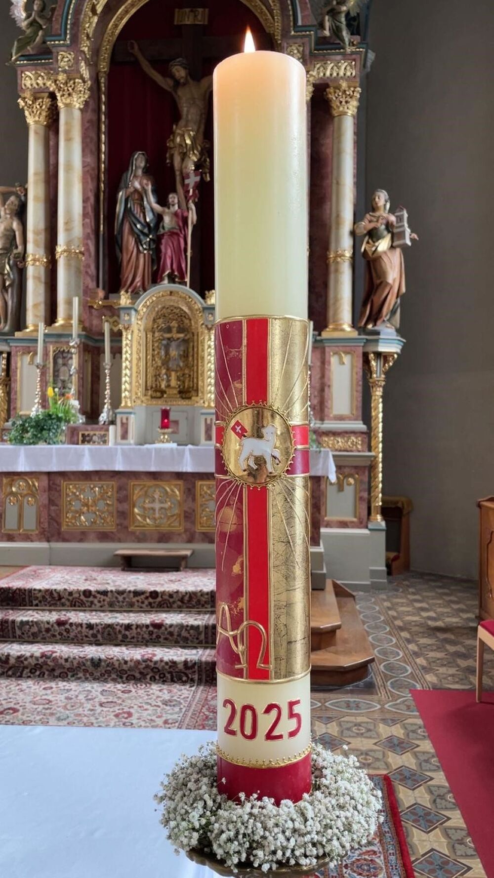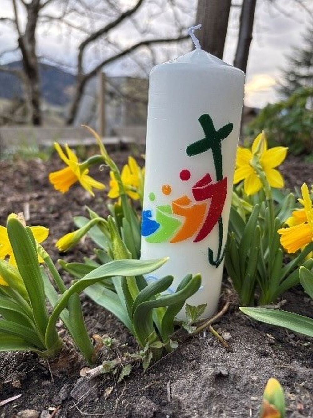 Einige Frauen unserer Pfarrer haben wie jedes Jahr in der Fastenzeit kleine Osterkerzen verziert. Das Motiv dieses Jahr war das Logo des Heiligen Jahres „Pilger der Hoffnung“. Die Kerzen wurden von Pater Regis gesegnet und nach dem Palmsonntagsgottesdienst für einen guten Zweck verkauft.