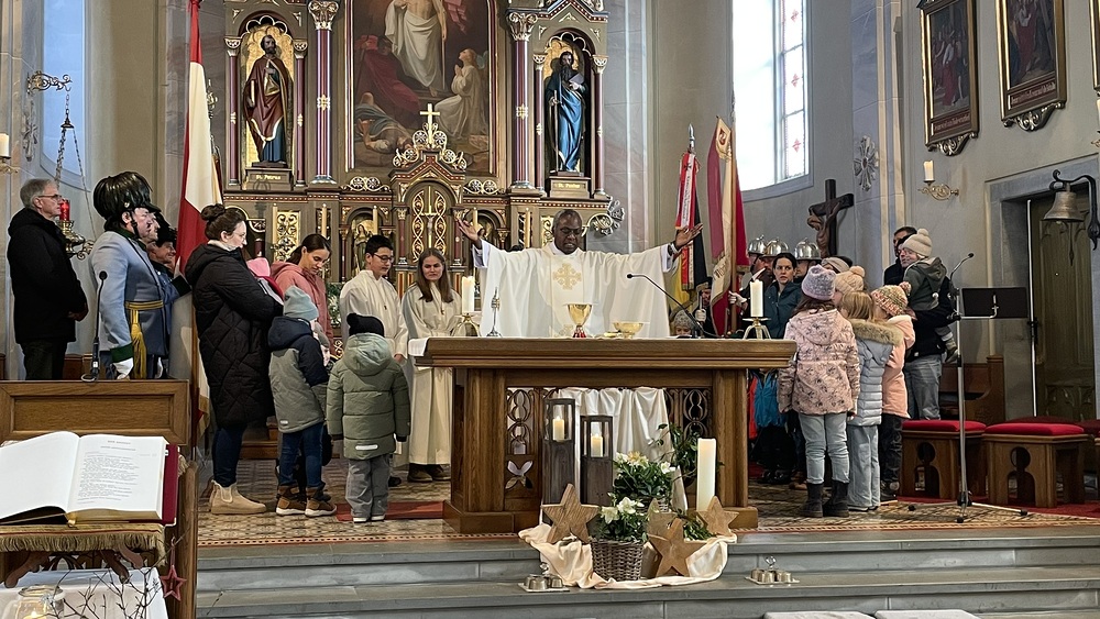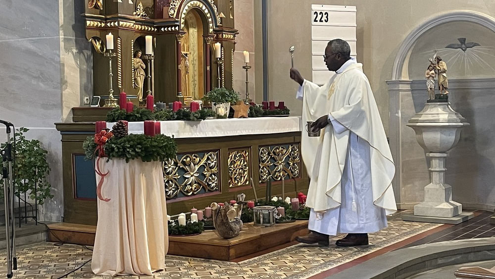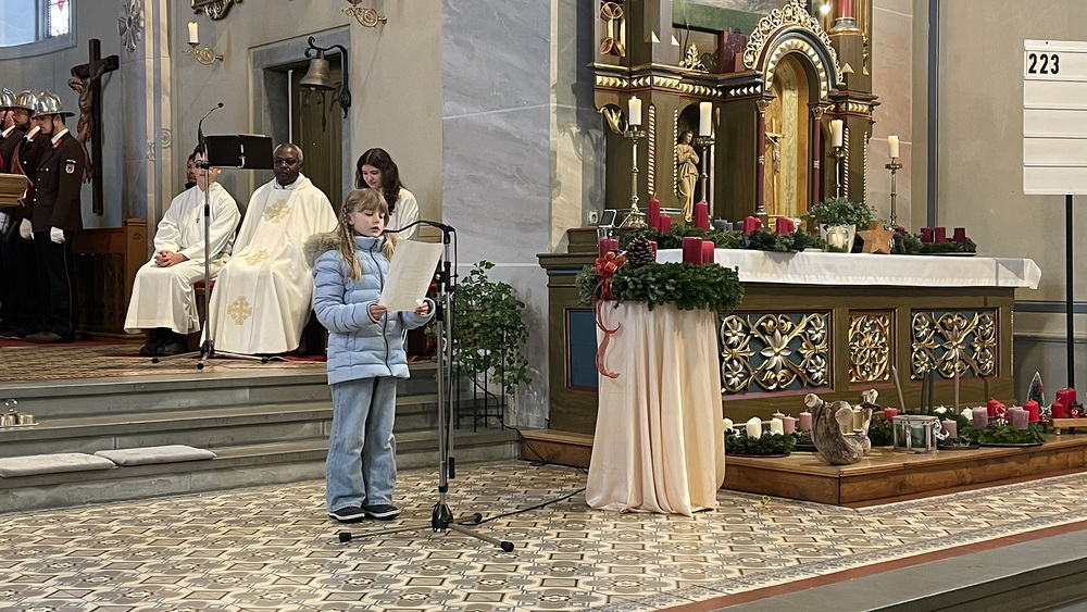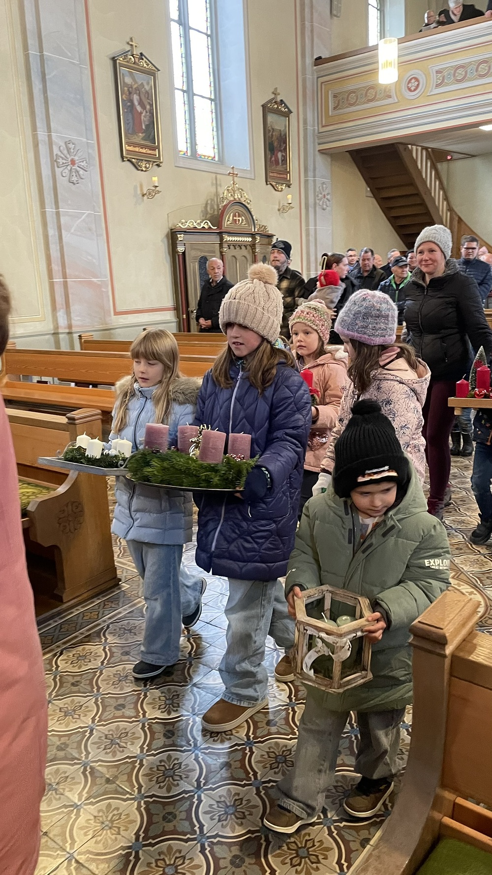 Zu Beginn der Messe trugen die Kinder beim gemeinsamen Einzug ihre Adventskränze in die Kirche, die dann von Pater Abidon gesegnet wurden.