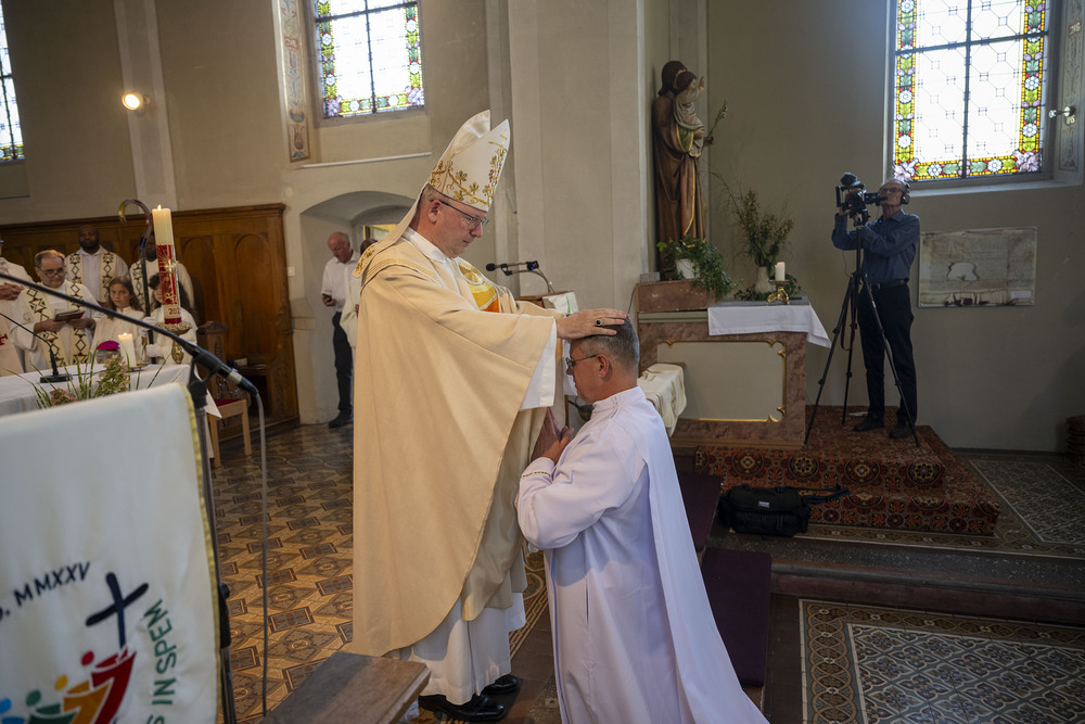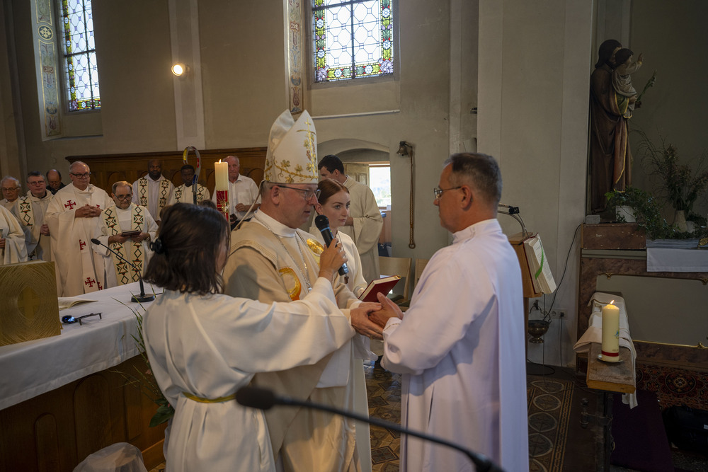 Bischof Benno nahm anschließend die Weihe durch Handauflegung und Gebet vor. Bischof Benno sprach dem neugeweihten Diakon den Frieden zu und besiegelte damit die Aufnahme in das neue Amt.