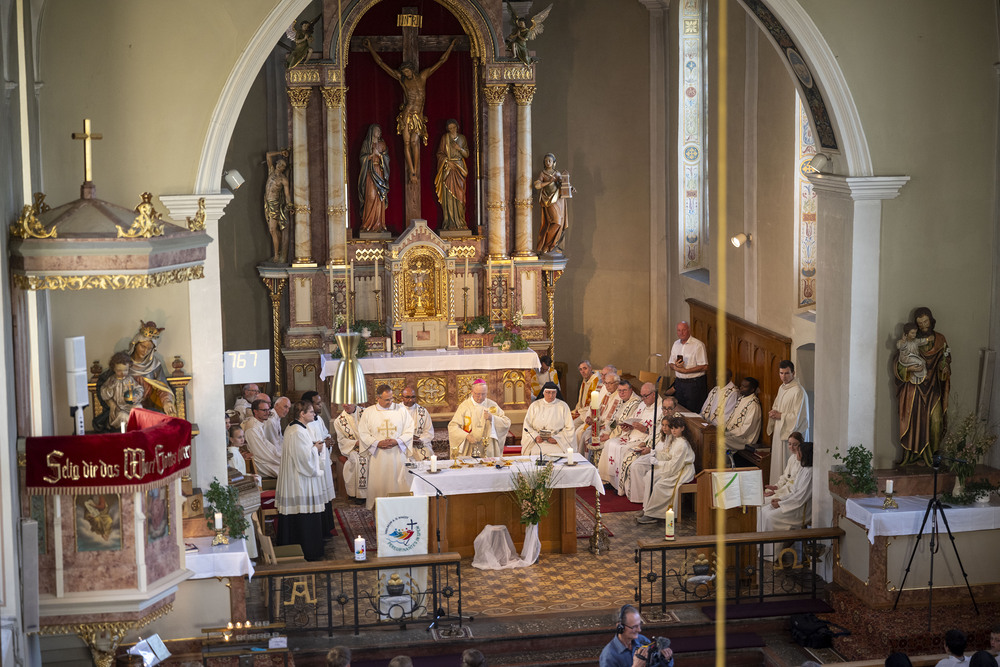 Zu diesem Anlass war das Gotteshaus bis auf den letzten Platz gefüllt. Zahlreiche Vertreterinnen und Vertreter des Mariannhiller Ordens sowie der Missionsschwestern vom Kostbaren Blut, Mitglieder der Diözese, des Pfarrverbandes und natürlich die Familie, Freunde und Wegbegleiter unseres Weihekandidaten ließen sich dieses bedeutende Ereignis nicht entgehen.