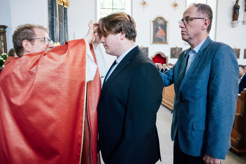 Feierliche Firmung mit Pat:innen, Familien und Freunden. Du empfängst das Sakrament und wirst mit Gottes Geist gestärkt für deinen Lebensweg. |